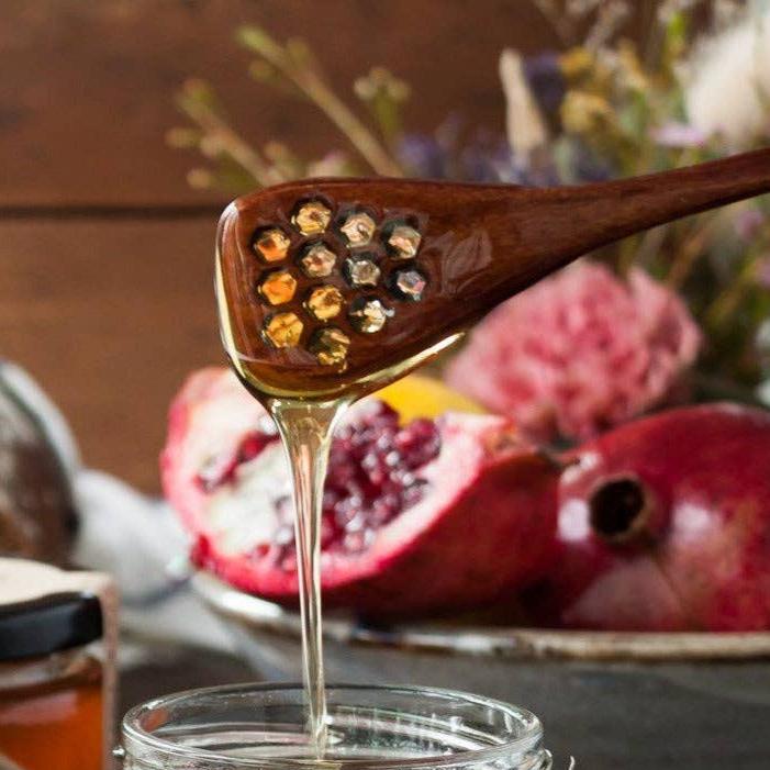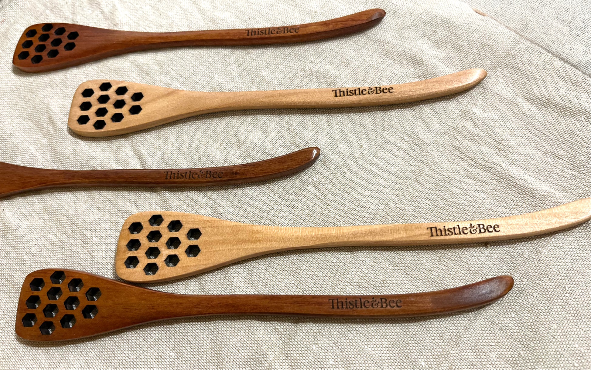 Thistle and Bee Engraved Honey Dippers With Hex Holes