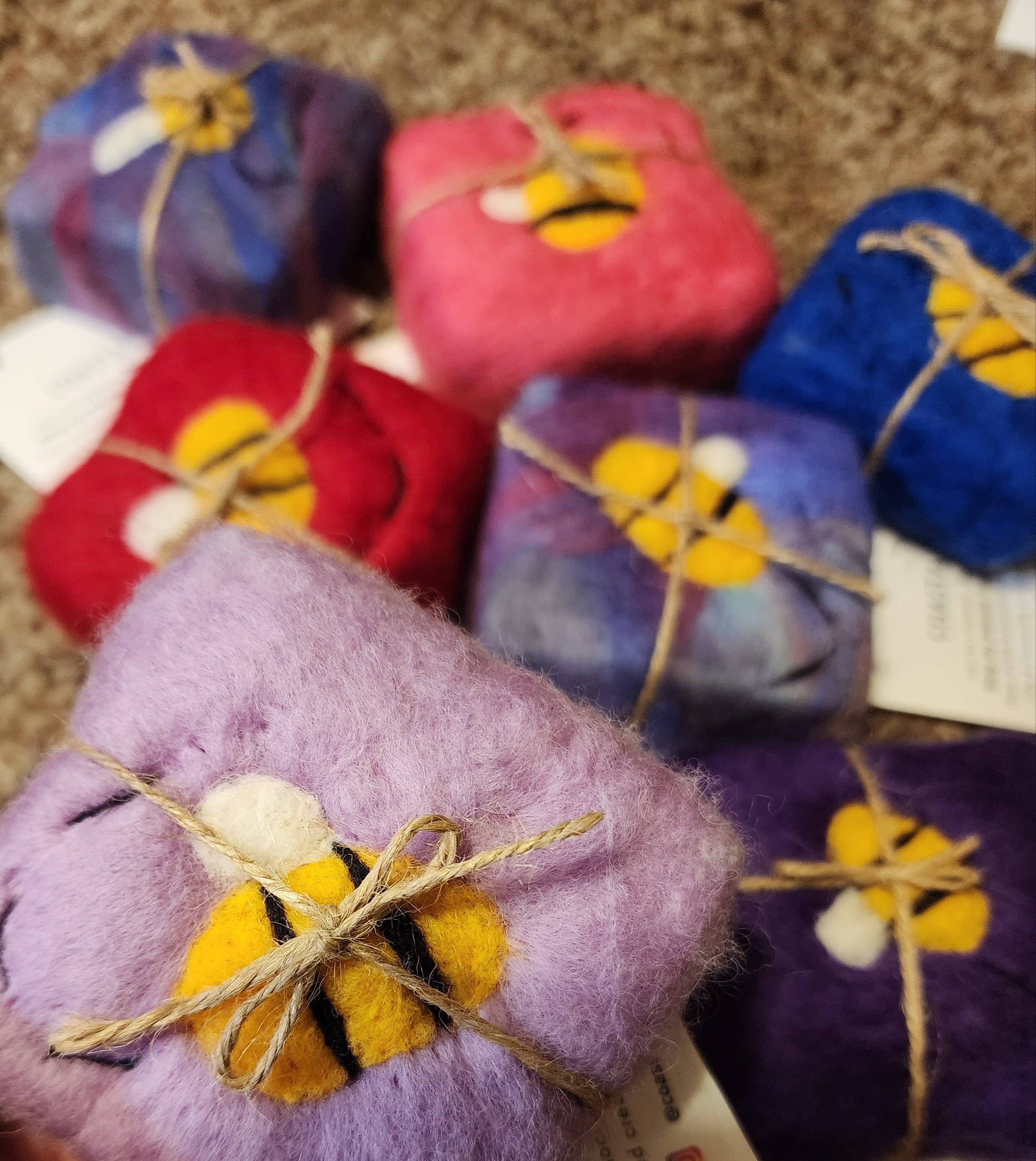Handmade Soap bar is covered in wool, wet felted soap bar. Bee design. Comes with an ingredient tag. Colors will vary.