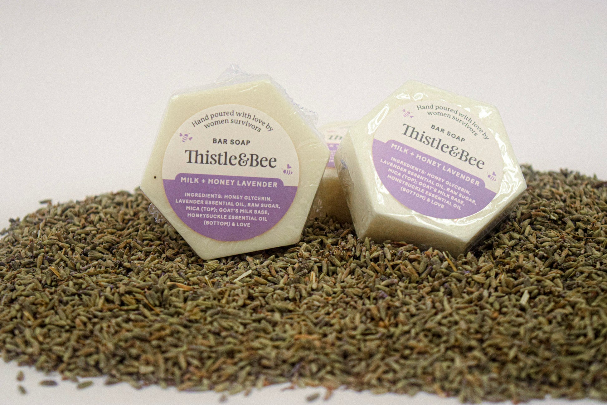 Thistle and Bee’s Honey Lavender Soap is handmade by survivors. The secret ingredient is love.