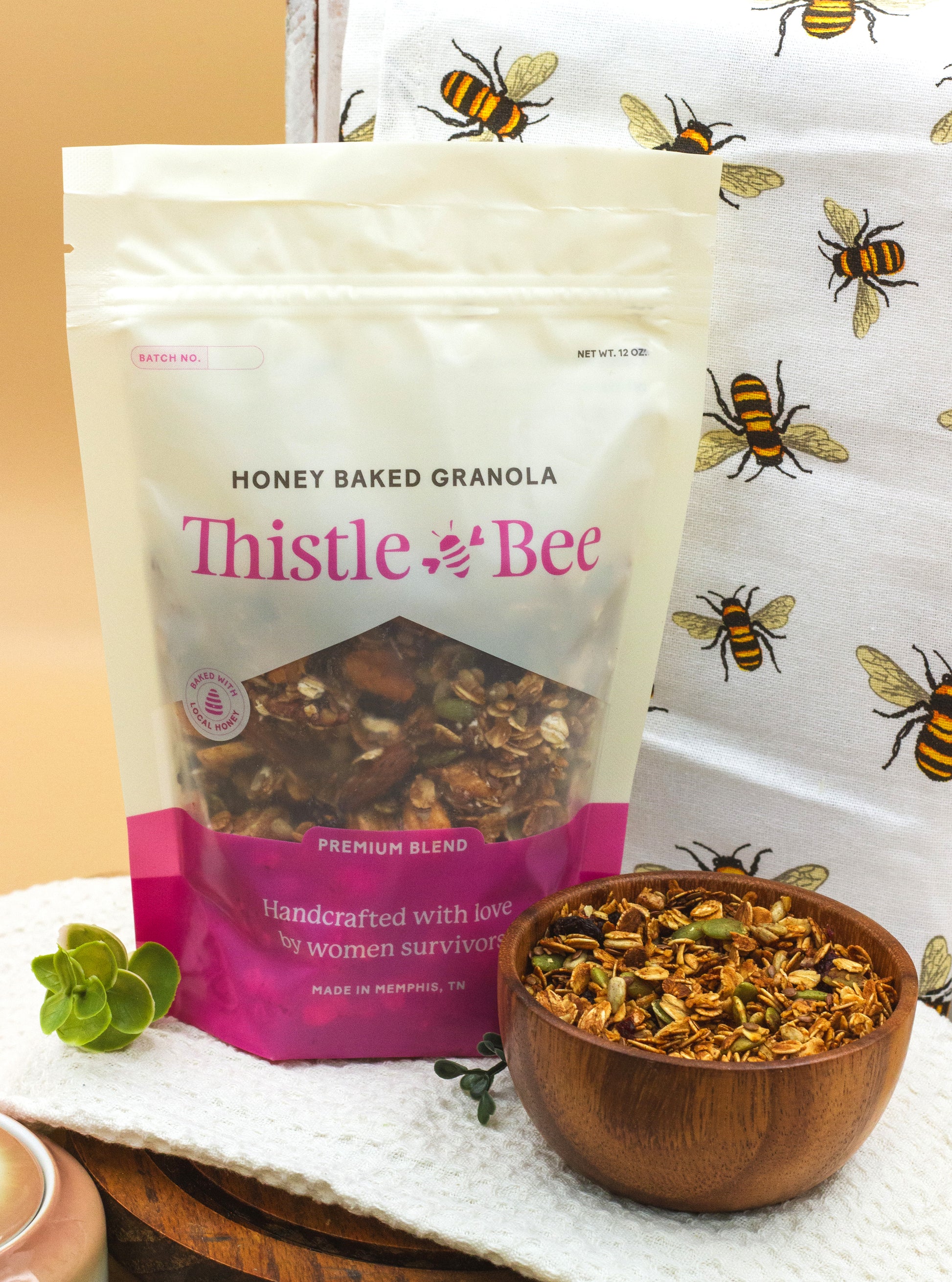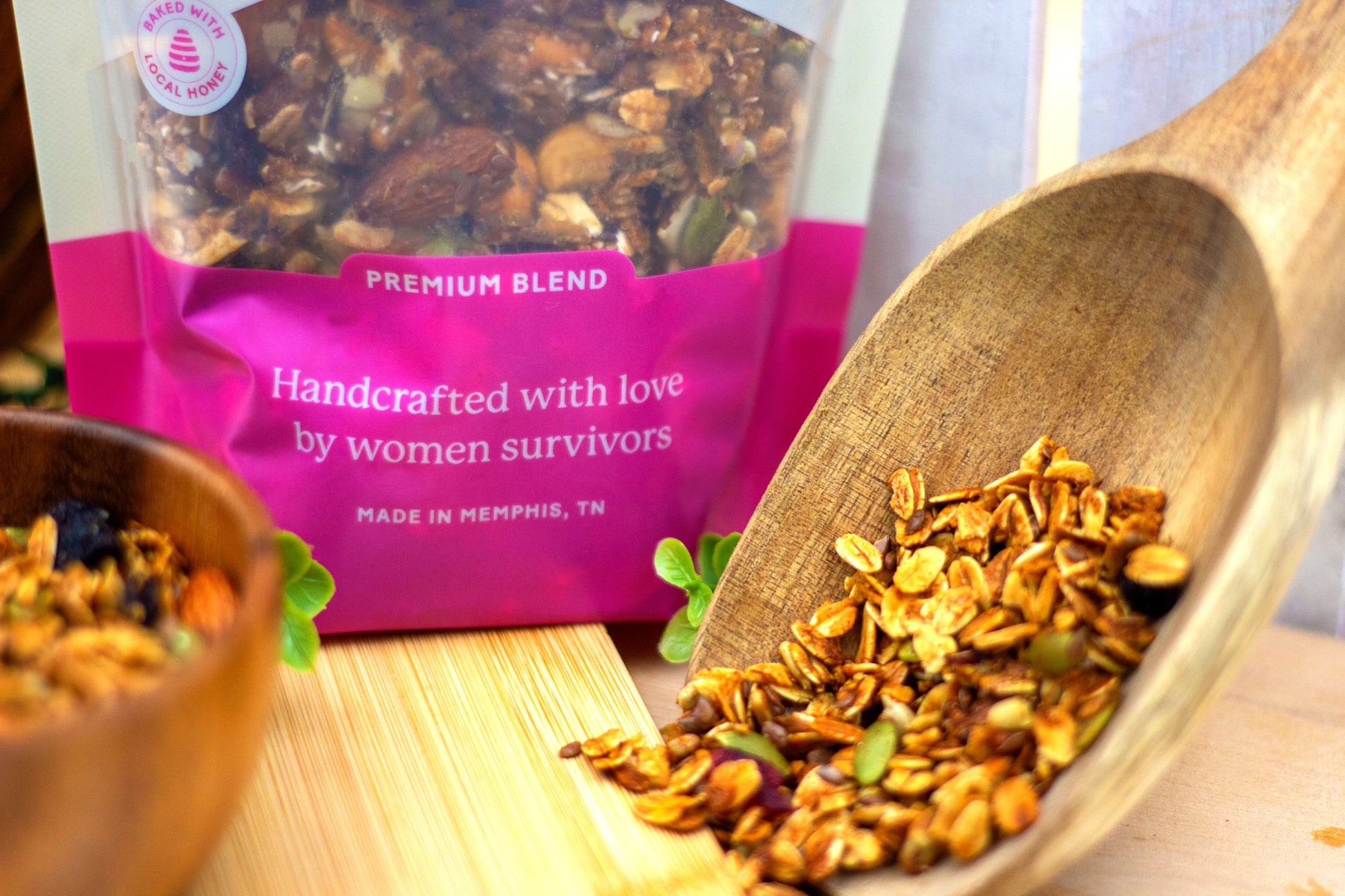 Our premium honey baked granola is made weekly by our team here in Memphis. This granola is sure to become a family favorite! With cashews, oats, pecans, and local honey, each batch is baked four times for the perfect balance of sweet and nutty. Try it with yogurt, as a cereal, or as a standalone snack!